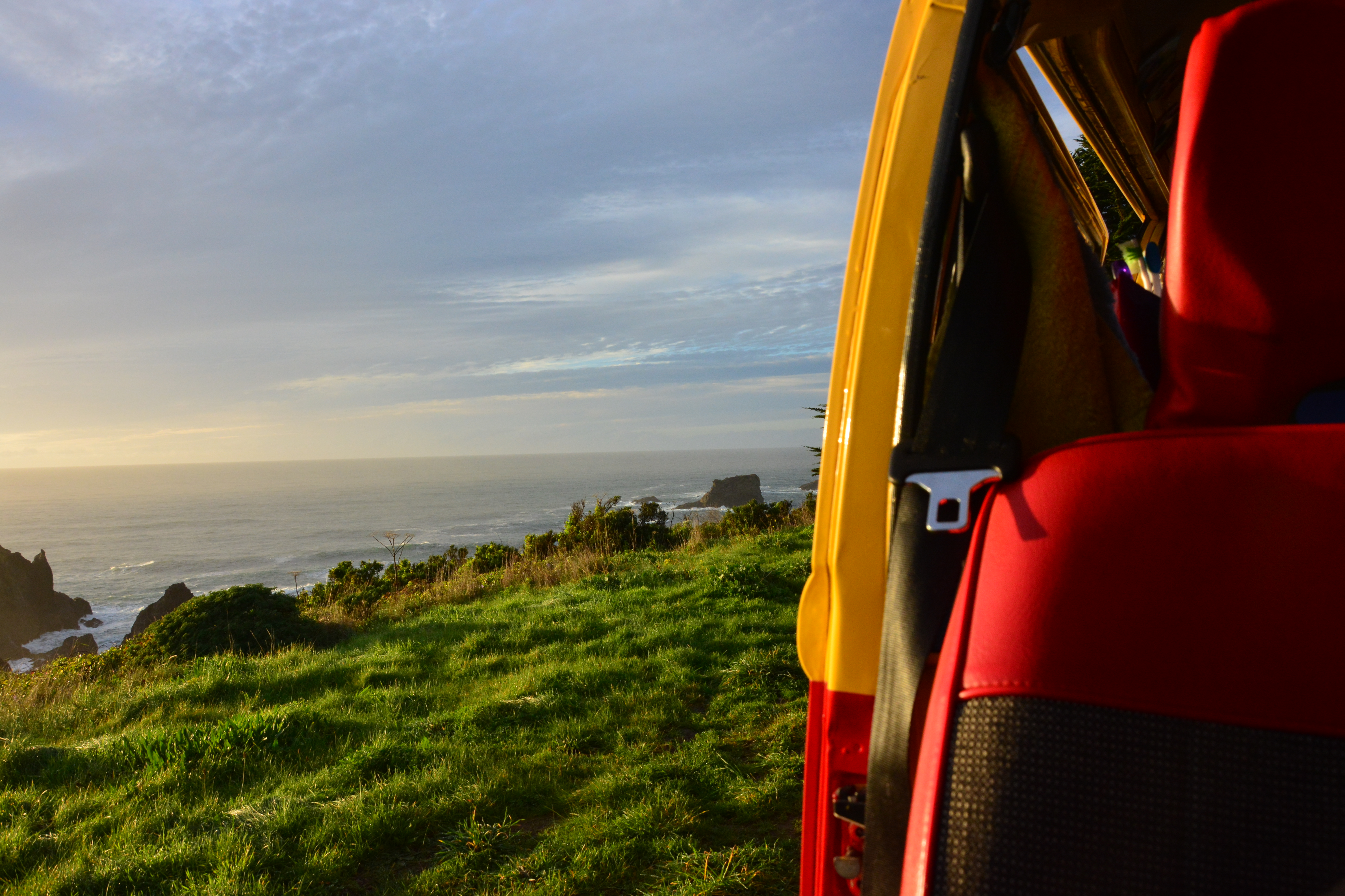 We stop just north of Fort Bragg for the night. We can’t find that old campground (we knew it was a KOA - the expensive sort of campground, and recognizable) even though it shouldn’t be hard. I can’t believe we used to stay in those. Maybe they have sold it, or something. We pull into a free campsite, a beautiful one right on the Pacific Coast Highway overlooking the ocean and the craggly cliffs that define that stretch of coastline, talking about how stupid we were back then. How much we didn’t know about this Bus.