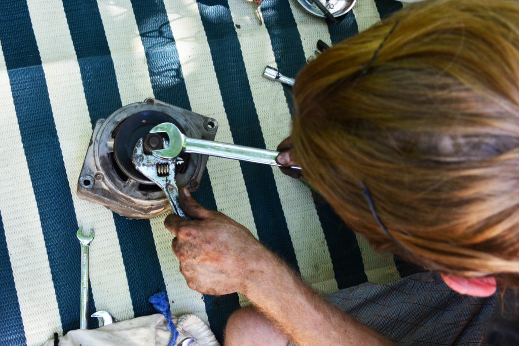 This option would be the most stressful of the bunch. This would mean getting new alternator bearings, not the whole thing. There are two bearings in our alternator. If we were lucky, the broken bearing was the one that was easy to reach; if we weren’t, it would be the hard one. Neither of us knows a lot about alternators and has never rebuilt or even seen the inside of one before. Like most Big Emma repairs, this would be all-new territory for us.