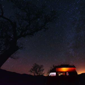 We’re in the hills of south-central California, near a town called Coalinga, which is basically three or four streets with a few fast food joints surrounded by a forest of oil pumps. We are about 20 minutes outside of town. There is actually a campground here, but we couldn’t figure out if we were supposed to pay for it. Lucky for us, there is just nobody else here to ask. Campsites with picnic tables look like they wish they had guests in the dark night. Not even the wind is blowing. Like usual, I am cold, so I prefer to cuddle in our Bus while Sven is outside taking star pictures with our new wide-angle lens. He calls me outside, and I wrap myself in a blanket before heading out into the chilly winter air. “Listen,” he says. I listen. But there is nothing to listen to, and I smile. We seem to be in one of those very rare spots where there is just no sound to hear, nobody around for miles. We are surrounded by complete and utter silence. It is just the three of us, two Emmas and a Sven, hidden away somewhere in the the USA’s most populous state.