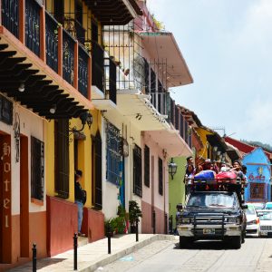 San Cristobal de las Casas is a city with a reputation among travelers as a good place to be. High in the mountains, the air is chilly like it hasn’t been since California. The streets are small, cobblestoned, and houses rarely stand more than two stories high. It is a Saturday night, and we have decided to wander the town, avoiding all of the stores and restaurants and bars that will want to trade whatever they have for our money. We walk around instead, enjoying the mix of tourists, street vendors, and locals going about their business. We stop at the next small-town intersection, and wait for a car to go by that is blasting Spanish Shakira out of the windows, inviting the whole town to sing along and smile. We cross the street and turn a corner, and suddenly find ourselves in one of Mexico’s rare pedestrian zones. Complete with the money-suckers, there are street musicians within earshot. To our surprise, next to bongos, one of them is playing what looks like a didgeridoo, adding a long, low bass to the scene. With a crack, fireworks appear in the sky above the street, and people stop to stare. They light up the sky with pops and flashes that make the streets even more colorful than they were already.