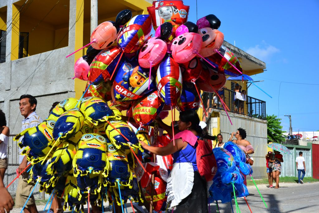 Belize Independence Day meant a fair, and fireworks, and a parade. We gathered along the streets of Orange Walk among its residents, street vendors, and balloon-merchants. Down the street came dancers - mostly women, but some men, too - dressed in elaborate, colorful costumes. By the time they got to our end of the parade, they seemed fatigued from the hot, midday sun. Despite this, many were still dancing enthusiastically, or drumming in their marching band or steel drum symphony. Languages and colors were everywhere, putting on a show to celebrate being Belize.