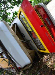 We were trudging through mud. Again. Every time I put weight on a foot, it went thluuump as my shoes vanished in brown gunk. Now we were in a huge mechanic’s yard in Belmopan, Belize’s tiny capital. Big Emma was sitting in the center of it. To her left, car wrecks in varying states of decay lined a concrete wall. To the right, the large mechanic shop was housed under a metal roof, towering at least seven meters high on massive steel beams. Under it, more vehicles were propped up on stands, an engine missing here, a wheel removed there.